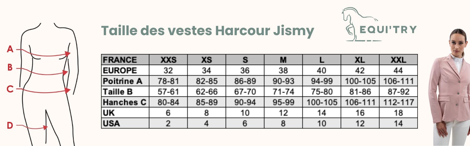 Les tailles de vestes de concours Harcour